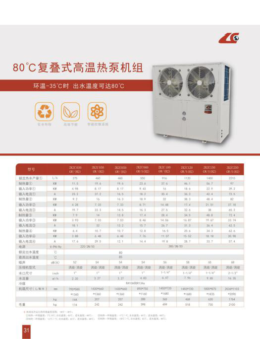 環(huán)保和高效節(jié)能設(shè)計(jì),使用R410A和134a環(huán)保冷媒,無污染;使用高效渦旋壓縮機(jī),德國GEA板式換熱器,雙級(jí)設(shè)計(jì)技術(shù),機(jī)組低溫制熱性能好,穩(wěn)定可靠。
